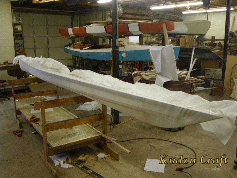 Next I started doing the whip stitch down the rear deck before I shrank the skin. I typically do this afterwards and I must admit the results have me concerned! The more I sewed the worse it looked. This photo exaggerates it but it did look bad!