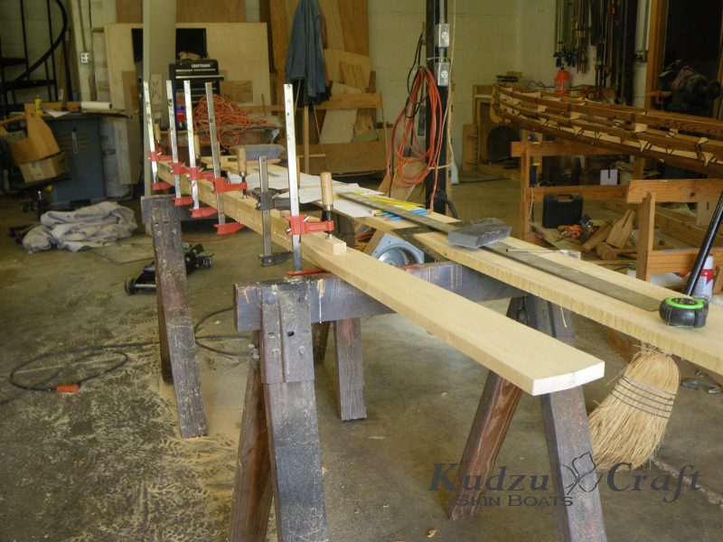 I had planned on laminating it to a full inch of thickness but I was surprised at how rigid it was at this thickness. There is going to be some give under a hard pull but since this is a recreational boat and not for competition I don’t think a little flex will be a problem. If I were racing I would want all my energy gong to moving the boat, not bending wood. The good thing is, if this does present a problem, I will build some stronger one and replace them.