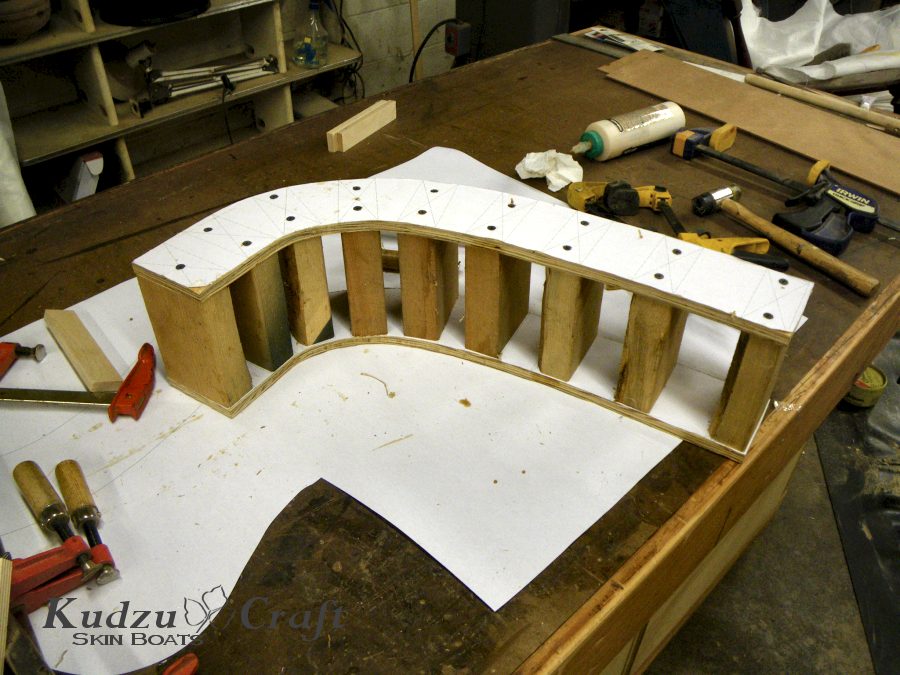 Time to build a form and laminate the outriggers from strips. I was trying to avoid this because I was afraid it was to complicated for inexperienced builders.  I have built a lot of laminated coamings for my kayaks and while they are not particularly hard, they are very aggravating.